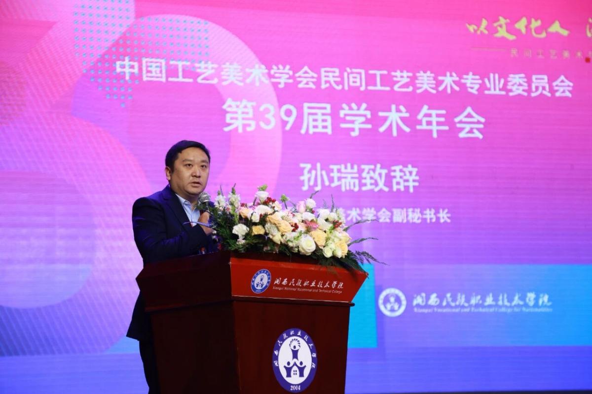 孙瑞代表学会致辞,对民艺专委会长期以来在学术引领与行业发展中所作出的贡献表示高度肯定,并指出在新时代背景下,民间工艺美术应更加注重“艺术生活化”与“生活艺术化”的双向融合。