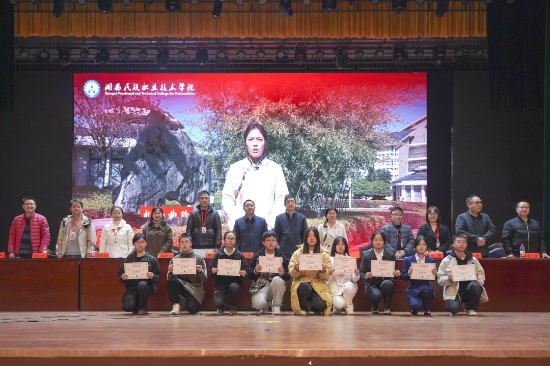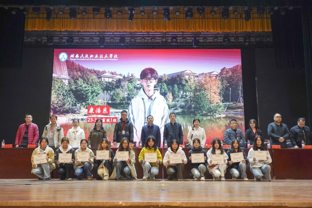 学生处处长李宝华宣读了《湘西民族职业技术学院关于表彰2024-2025学年先进班级及个人的决定》,对过去一学年在学业成绩、社会实践、学生工作、综合素质等方面表现突出的先进集体和个人给予高度肯定。本学年共评选出文明先进班级35个,三好学生、优秀学生干部、综合素质优秀学生、各类奖学金获得者以及校风学风建设先进个人等共计数千人次,充分展现了学校学子勤奋好学、积极进取、全面发展的精神风貌。