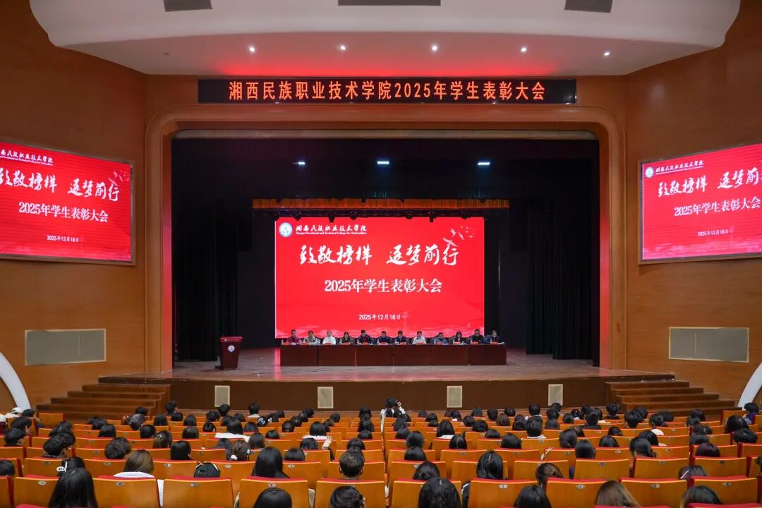 12月18日晚,湘西民族职业技术学院“致敬榜样 逐梦前行”2025年学生表彰大会在文体会展中心展示馆举行。学校党委委员、副校长黄毅出席大会,学生处、各二级学院相关负责人、辅导员及获奖学生代表等850余名师生齐聚现场。大会由学生处副处长颜涛主持。